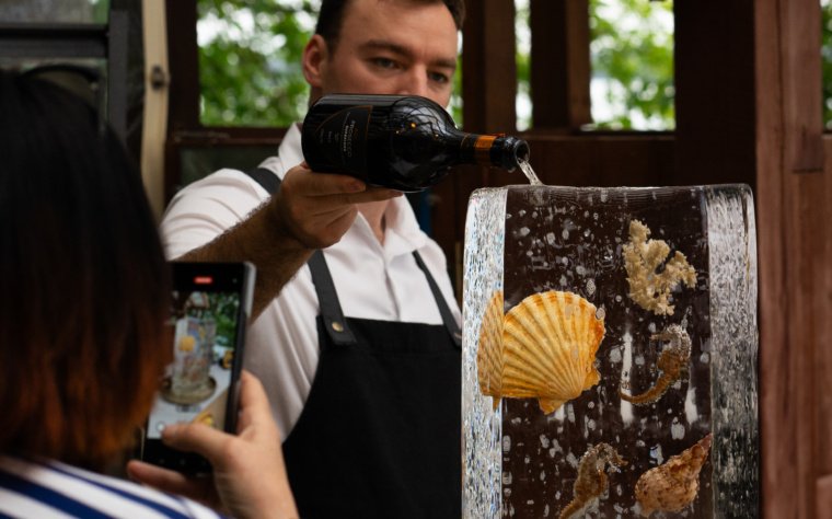 Ieškote įspūdingo akcento, kuris nustebins svečius nuo pirmos šventės minutės? Siūlome išskirtinę paslaugą – pasitikimo gėrimą, patiekiamą ant didelio ledo luito, kuris tampa ne tik gėrimu, bet ir tikru šventės meno kūriniu. Mūsų kruopščiai suformuotas skaidrus ledo luitas…
