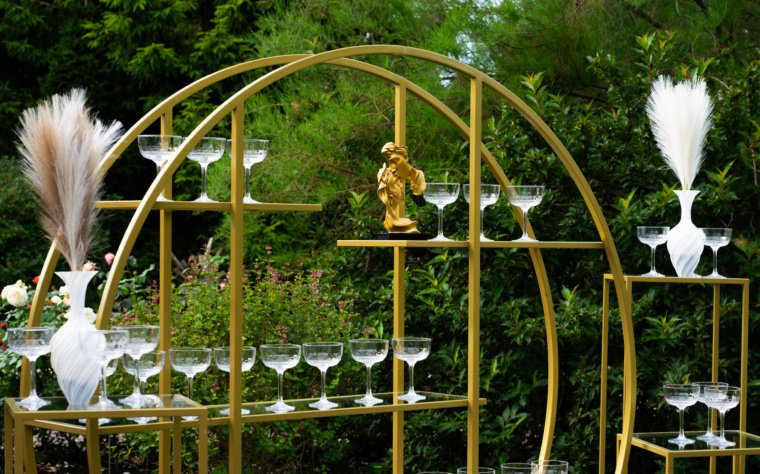 Šampano staliukas – išskirtinis vestuvių akcentas, kuriuo svečiai gali mėgautis iškart po ceremonijos.